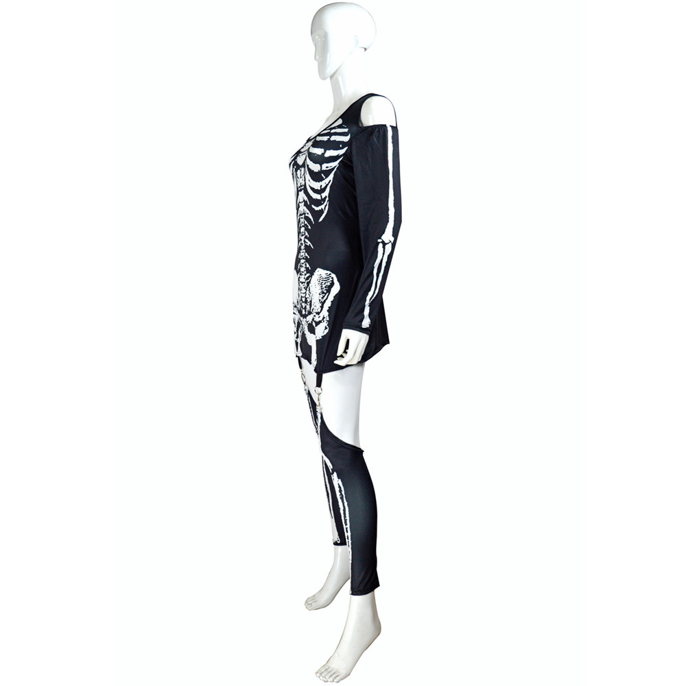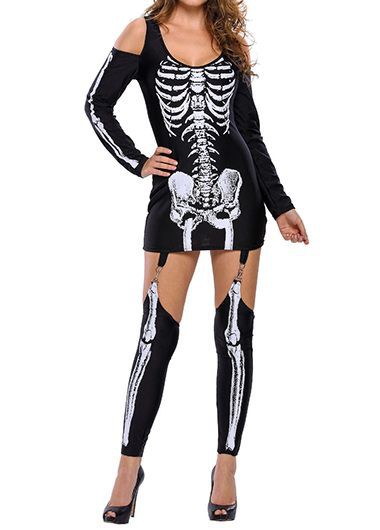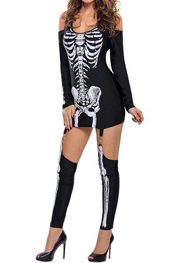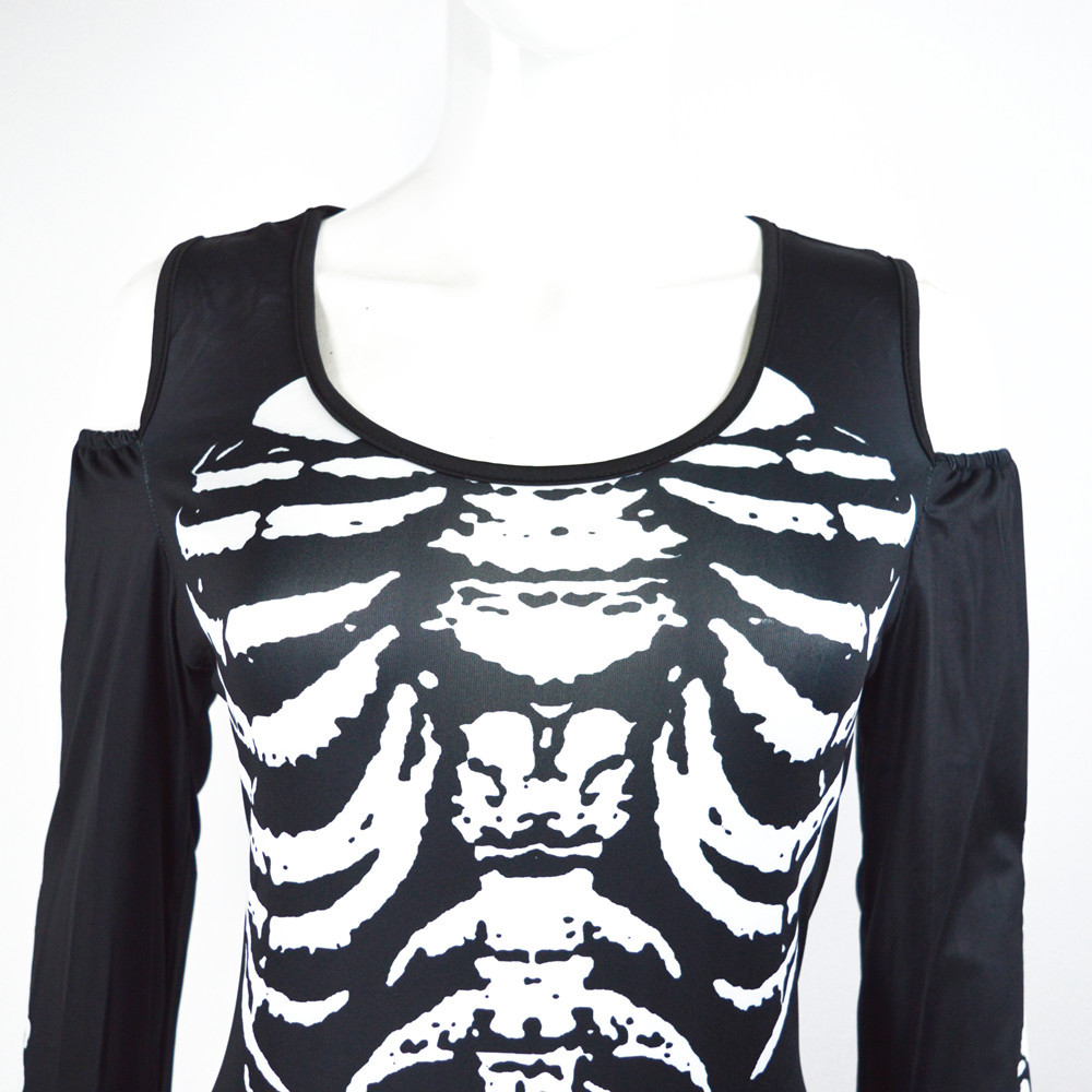 Skull Skeleton Printed Sexy Off-the-shoulder Halloween Costume